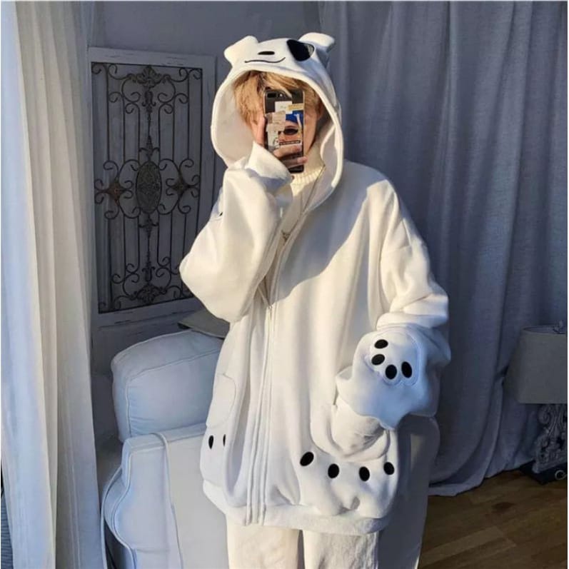 Detail BACK PANDA POCKET JAKET OVERSIZE - JAKET KARAKTER PANDA LUCU KEKINIAN
