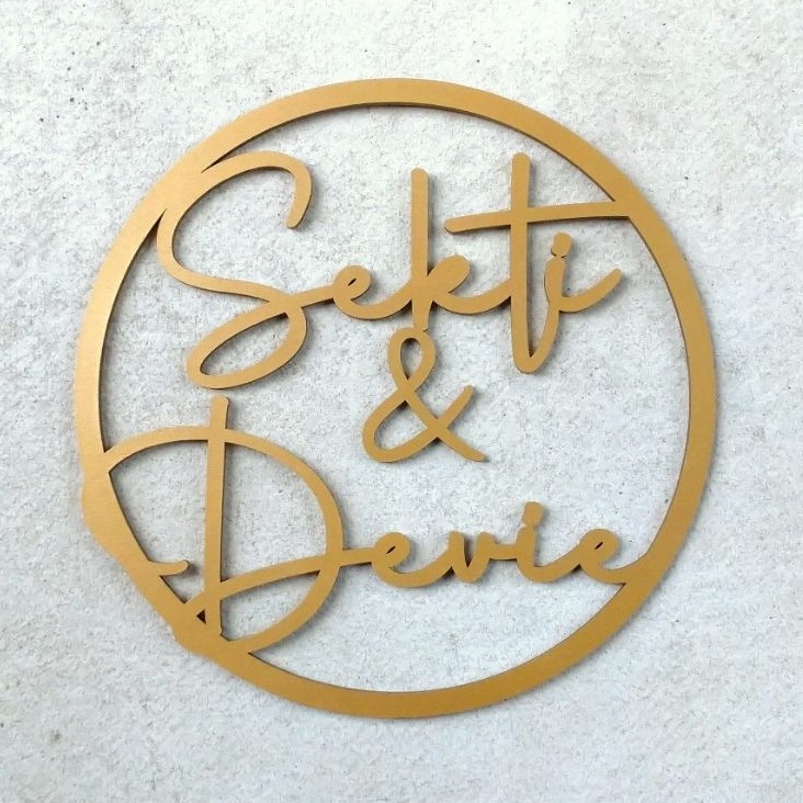 - Harga untuk 1 set (Tulisan dan bordernya) - Pilihan Warna : Natural, Gold, Hitam, Putih, atau request warna - Khusus warna Natural, warna sesuai bahan kayunya, Tidak di CAT - Warna (Cat) hanya di bagian DEPAN saja, belakang warna natural kayu - Material : MDF Grade A - Tebal 6 mm - Diameter : 20 dan 30 cm - Untuk Dekorasi Pesta Nikahan/Lamaran, bisa pula untuk hiasan dinding kamar - Untuk pemasangannya bisa anda tempel menggunakan Double Tape ataupun Tali/Benang (tidak kami sertakan)