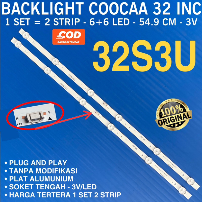 Detail BACKLIGHT TV COOCAA 32S3U 32S3A12G LAMPU LED TV KOKA 32 INC 6K 3V COCA 32IN 6 MATA KANCING