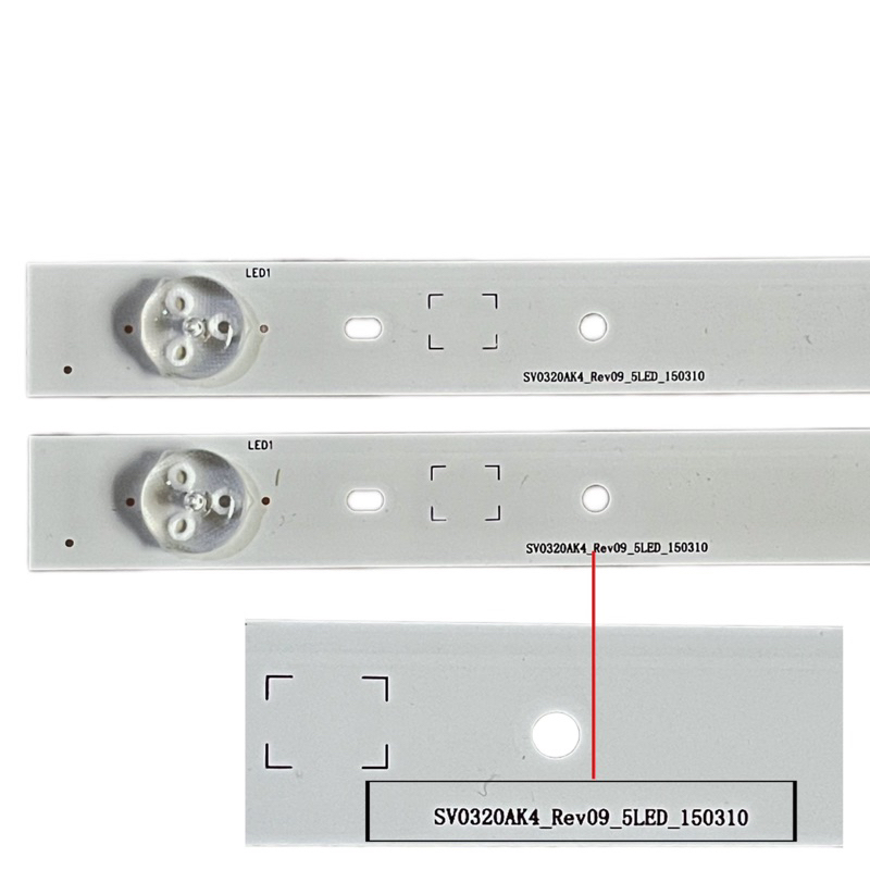 Spesifikasi produk : - Full set tv 2 strip - Per strip terdapat 5 led - Panjang 58.8cm/strip - Lebar strip 2cm - Bahan plat strip alumunium - Tegangan per led 3volt - 100% baru kwalitas original