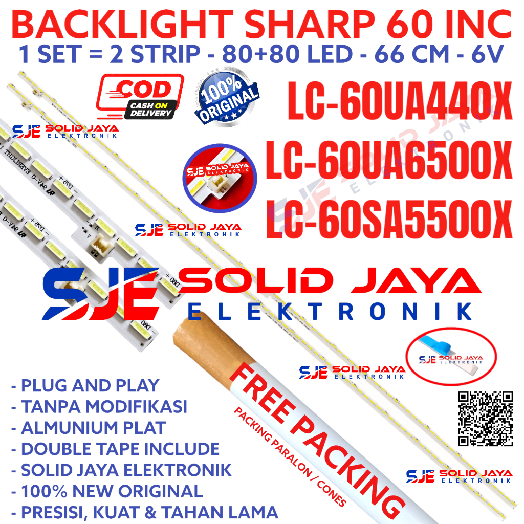 SPESIFIKASI : - HARGA SATU SET ISI TOTAL 2 BATANG / STRIP - ISI 80 LED PER STRIP / BATANG - TOTAL LED KESELURUHAN 160 LED ( 2 BATANG ) - PANJANG LED 66 CM - TEGANGAN LED 6V PER LED - SOLID JAYA ELEKTRONIK - PLUG AND PLAY - DOUBLE TAPE INCLUDE - TANPA MODIFIKASI - SOLID JAYA ELEKTRONIK - KUALITAS ORIGINAL - PRESISI, KUAT DAN TAHAN LAMA - SOLID JAYA ELEKRONIK