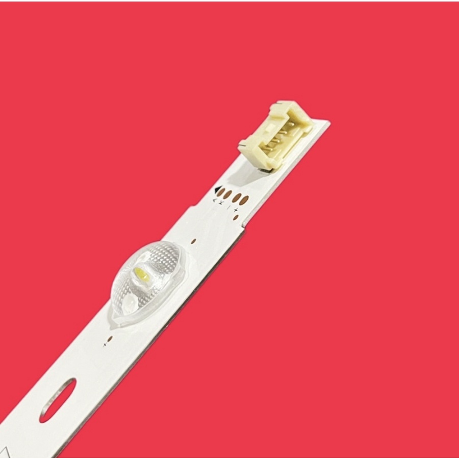 Spesifikasi: - Panjang 62,5 cm - Lebar 2.5 cm - Harga tertera 1 set 3 batang - Volt / LED: 3 Volt - Jumlah LED per batang: 11 LED - Soket 4 PIN - Plat alumunium - Sudah terdapat double tape/lem perekat asli untuk menempel backlight - Langsung bisa dipasang tanpa modifikasi - Plug & Play
