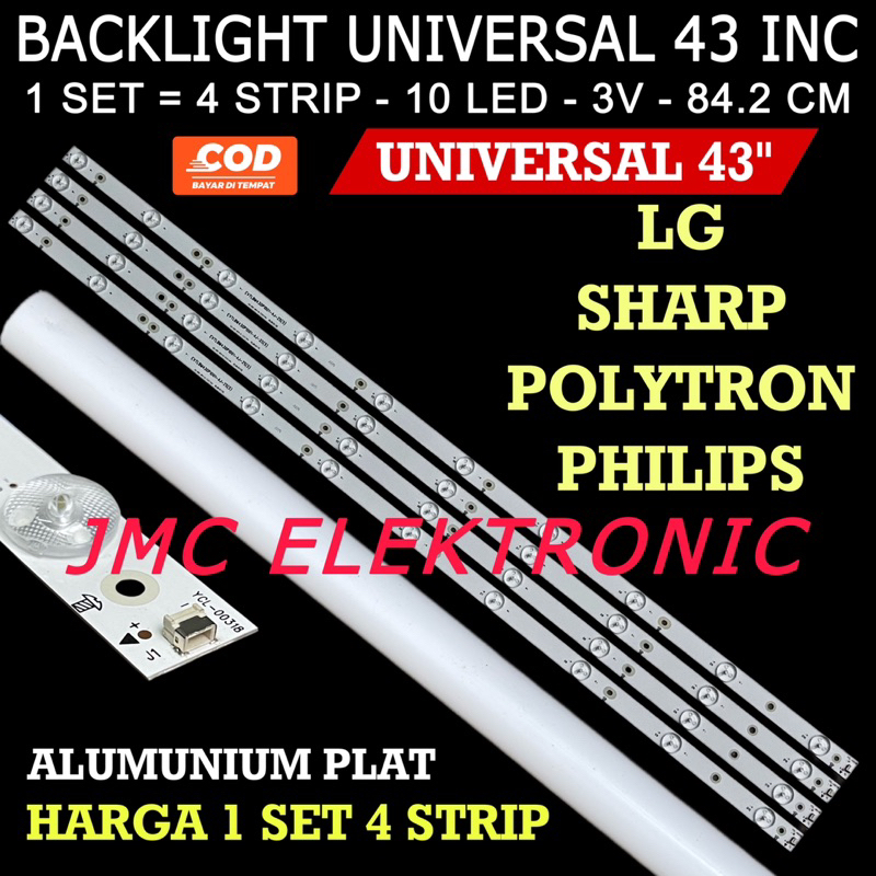 Detail BACKLIGHT TV UNIVERSAL LG SHARP POLYTRON PHILIPS PANASONIC AQUA 43 INCH 10K 3V LAMPU LED BL TV ALTERNATIF MODIFIKASI 43IN 10 MATA KANCING 3V 84.2CM