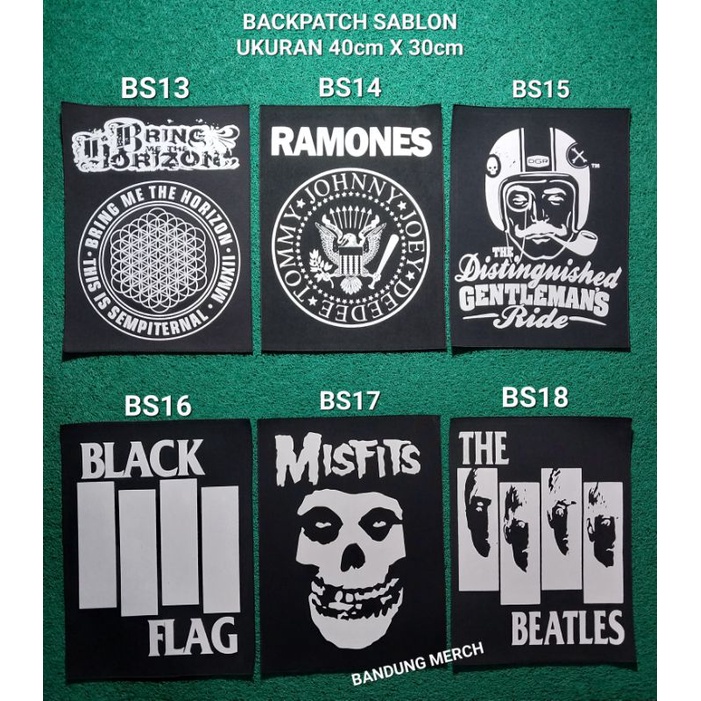 GROSIR MINIMAL ORDER 12pcs. __ BACKPATCH SABLON BAHAN : COTTON + CANVAS SABLON BUKAN PRINT UKURAN : 40 cm X 30 cm Tahan lama dan gak luntur. Untuk di gunakan di belakang jaket.