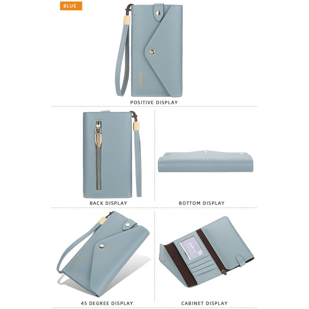 Spesifikasi Produk: • Merek : Baellerry • Tipe : Dompet Panjang, Clutch • Isi Dalam : 3 Tempat Kartu, 1 Tempat Foto, 1 Tempat Uang, 1 Tempat Handphone, 1 Tempat Koin • Style : Fashion • Bahan Kulit : PU Leather • Tas : Wanita • Berat : 0.200kg • Ukuran : 18.5Cm x 2.5Cm x 10Cm • Panjang Tali Tangan : 22.5Cm • Style : European and American Style