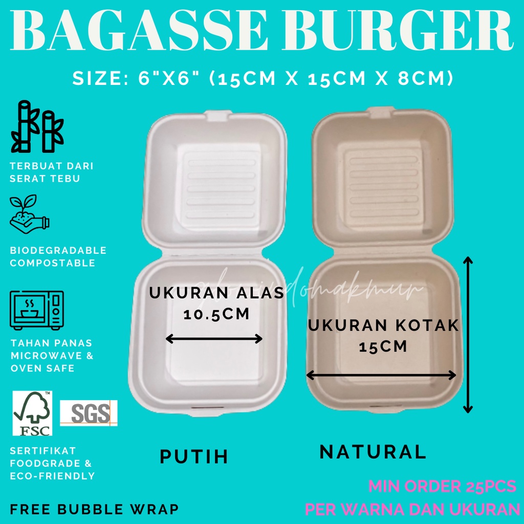 Detail Bagasse Burger Bento Box 6inch Sugarcane Lunchbox