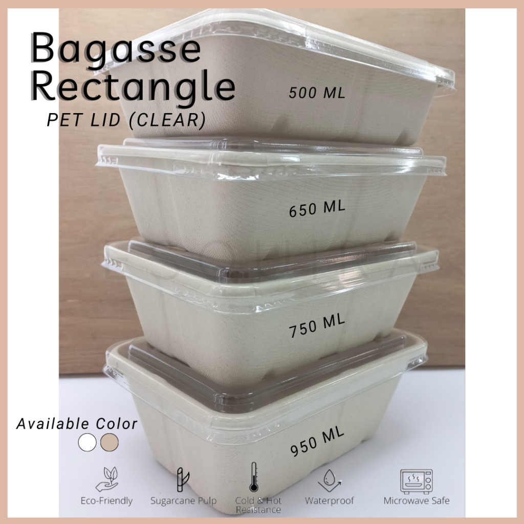 Bahan Sugarcane Bagasse atau serat tebu bukan stryoform Eco friendly aman untuk makanan panas, Biodegradable and Compostable (Dapat teruai) Kemasan sekali pakai