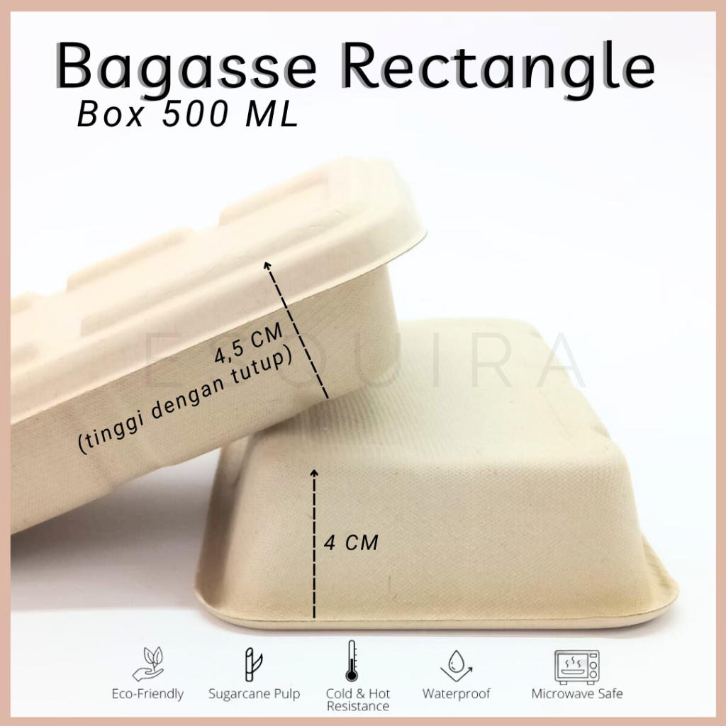 Detail Bagasse Rectangle / Lunch Box 500 ML/Pulp Lid /Mika Lid /10 PCS/ C500,C500X