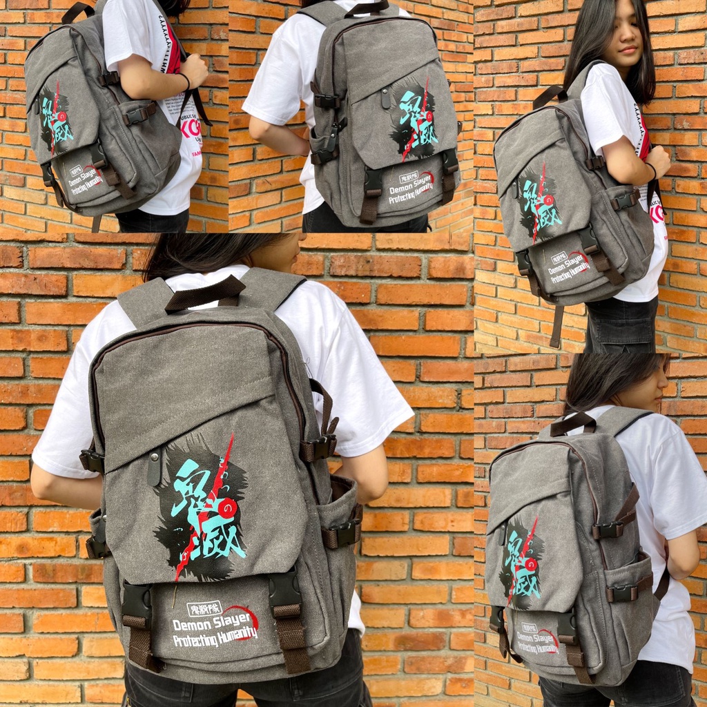Detail Bagpack Demon Slayer Canvas Grey Anime Manga Kimetsu No Yaiba Tas Sekolah Wibu