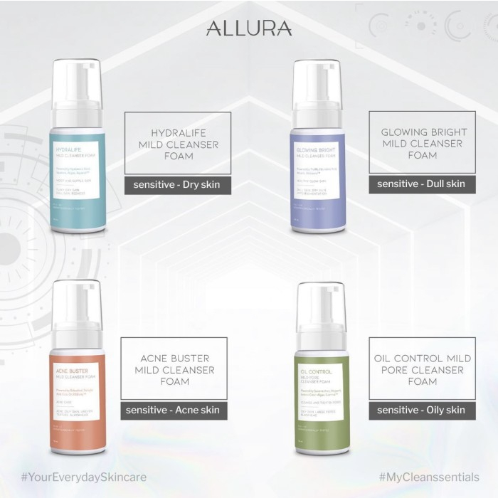 Detail ⭐BAGUS⭐ ALLURA Mild Cleanser Foam 100ml | Glowing Acne | Facial Wash | Hydralife | Oil Control