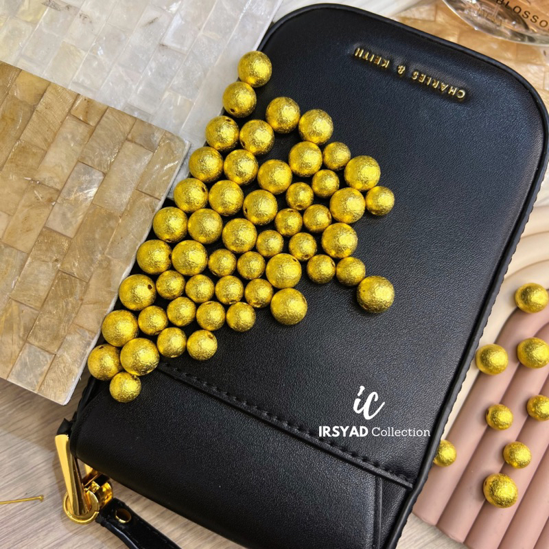 BAHAN AKSESORIS | 15gr (16-28pcs) MOTE MUTIARA BULAT WARNA EMAS