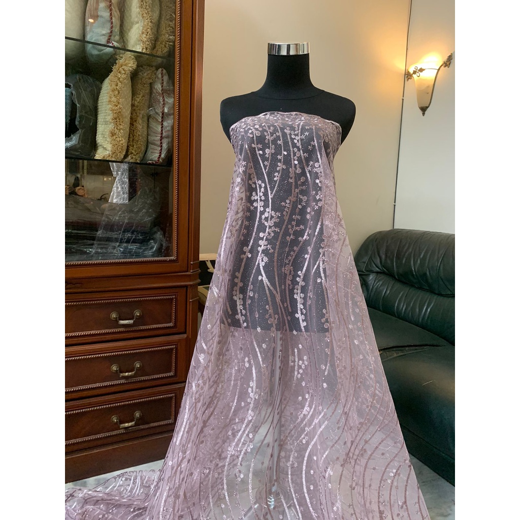 Detail Bahan Kain Brokat Tile Gloria Luxury Warna Ungu Taro Dusty Purple