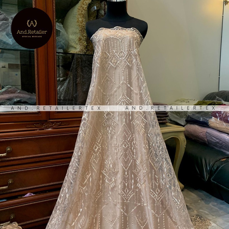 Detail Bahan Kain Kebaya Brokat Tile Etnic Madeline Warna Coksu Latte