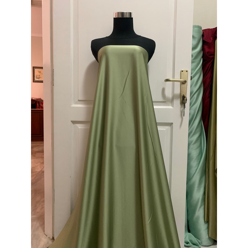 Detail Bahan Kain Satin Armani Silk Original Warna Sage Green Hijau Sage