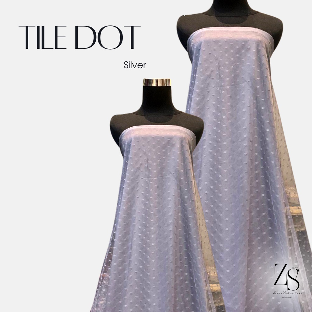 Detail Bahan Kain Soft Tile Tille Tule Tulle Dot Dotty Halus Lemas Warna Abu Silver