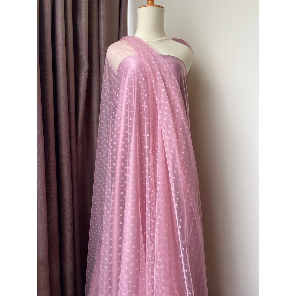 Detail Bahan Kain Tile Tille Tule Tulle Dot Dotty Warna Dusty Pink Merah Muda