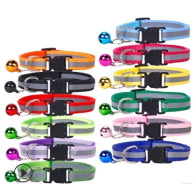 Kalung lonceng untuk kucing dan anjing. Dilengkapi dengan bahan reflective yang dapat memantulkan sinar cahaya di dalam gelap, tersedia banyak pilihan warna Warna : Merah, Kuning, Biru, Pink, Ungu, Hitam, Warna Jeruk, Hijau Muda, Hijau Rumput, Biru Safir, Hijau Stabilo, Merah Mawar