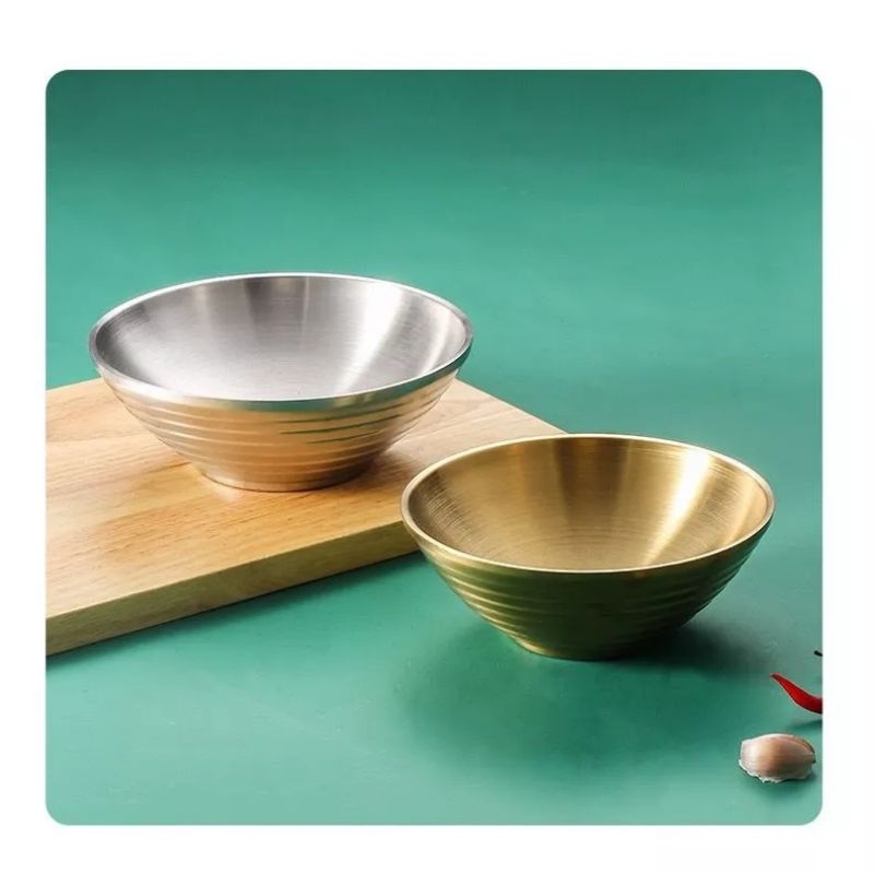 Bahan Tebal Mangkok Stainless 304 Emas Double Wall Gold Ramen Bowl / Mangkuk Korea / Mangkok Import / Mangkom Ramen