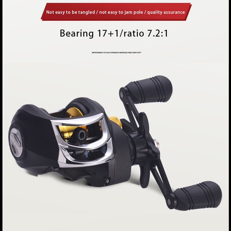 8-10 kg drag 7.2:1 Super High Gear Ratio,more faster than the normal baitcast reel. The thickened gear body improves the wear resistance and pressure resistance of the fishing reel. SIC ceramic guide ring Cocok untuk semua perairan Product Features: