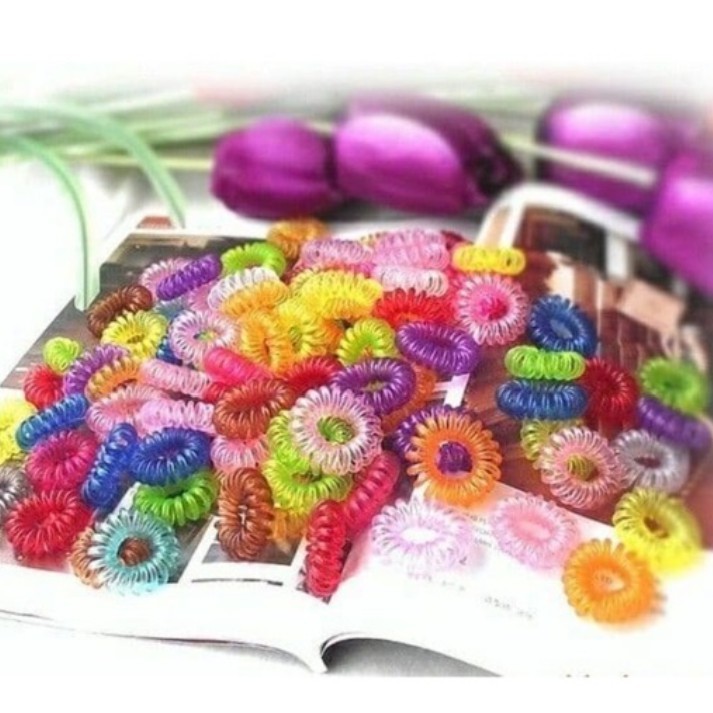 Detail BAJ KUNCIRAN RAMBUT SPIRAL WARNA WARNI / IKAT RAMBUT SPIRAL / Kunciran Rambut Kabel Spiral Mini IR023