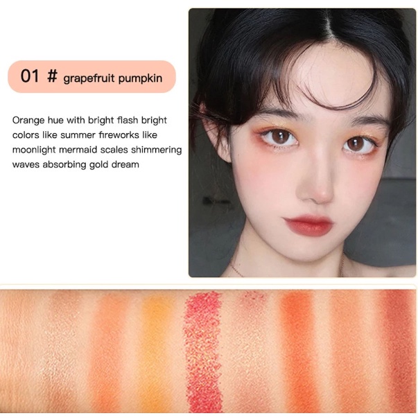 Ingredient : Glitter shimmer matte eyeshadow Benefit : Long-lasting, Easy to Wear, Natural, Brighten, Waterproof Finish : Luminous, Glitter, Shimmer, Matte, Metallic, Radiant Type : Eye Shadow NET WT : 1.5g*9 Color : 9 colors eyeshadow Shelf life : 3 Years