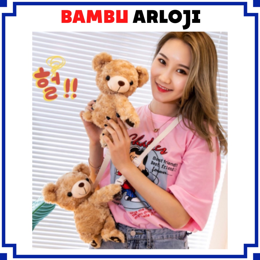 Detail BAJ Tas Bulu Selempang Teddy Bear Tas Boneka BERUANG merangkul import Terbaru Shoulder Bag Lucu Selempang Kartun Untuk Wanita Bahan Plush Boneka TF095