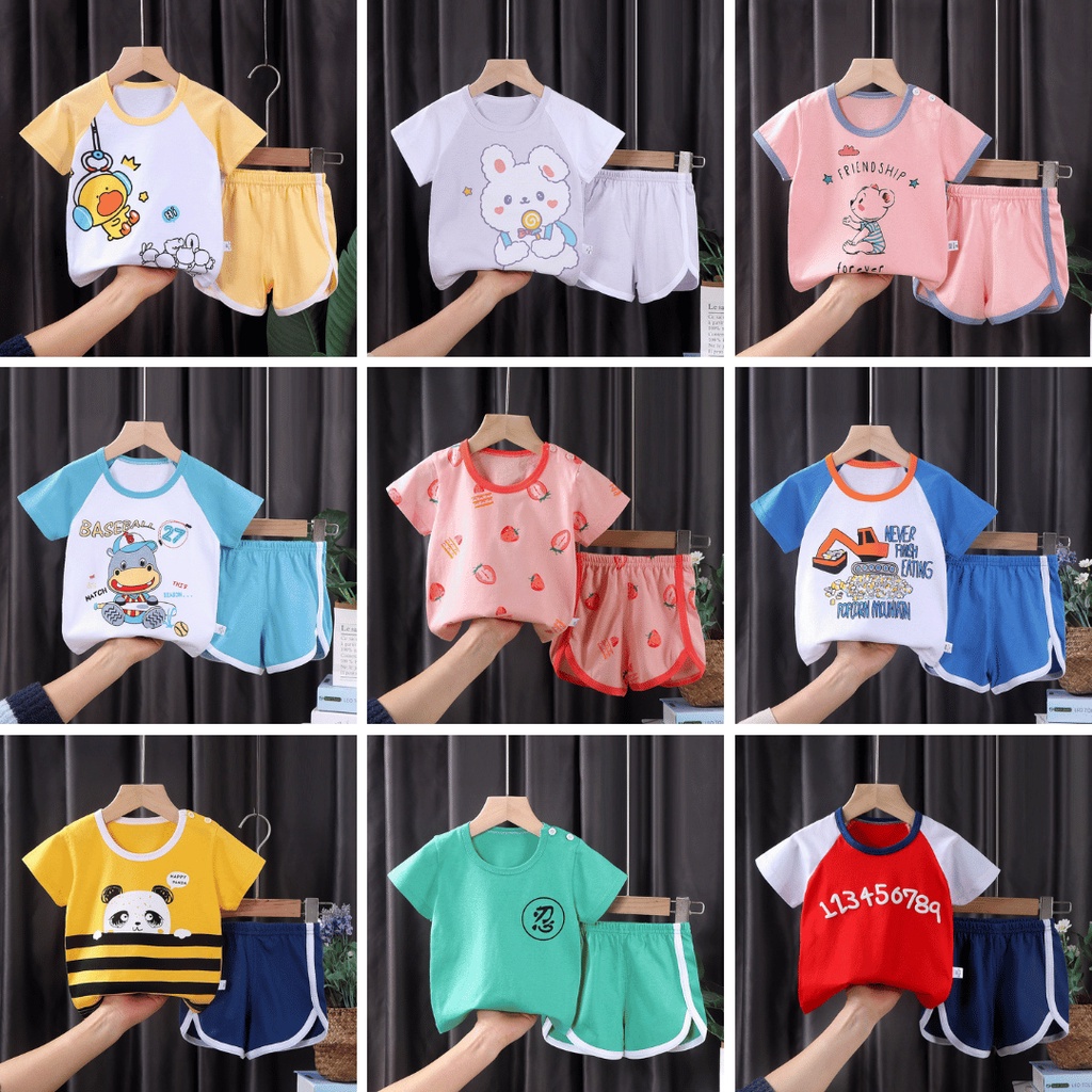 Detail Baju anak baju bayi import Korea base putih karakter printing anti luntur setelan anak stelan bayi