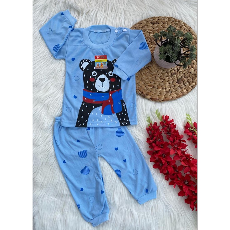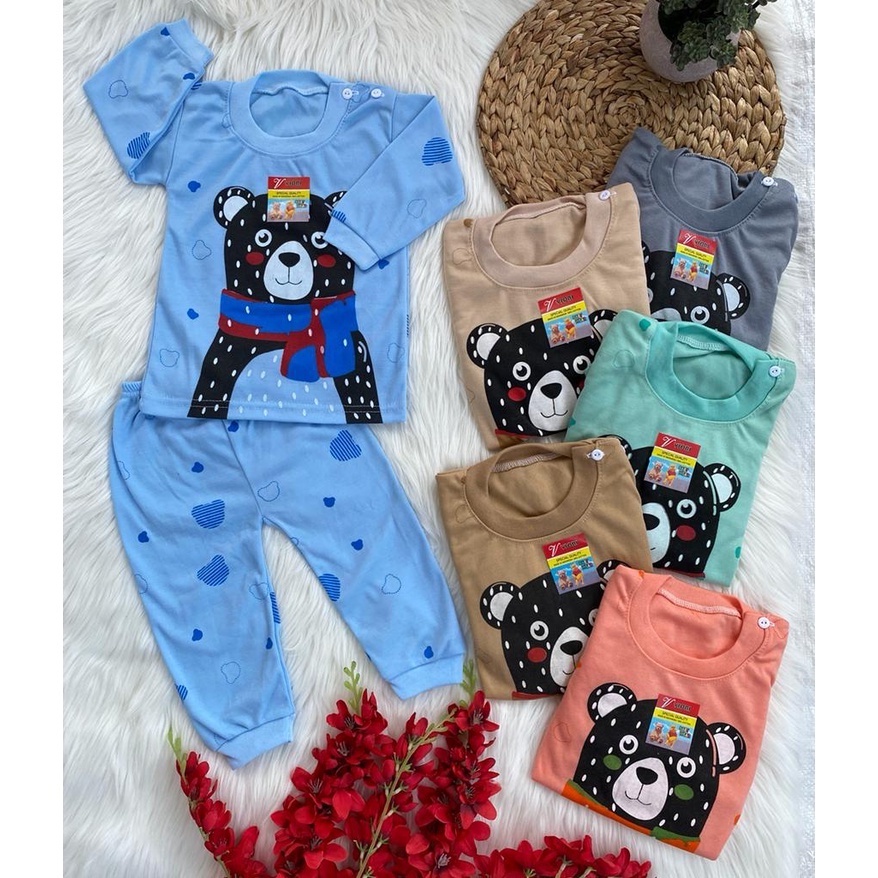SETELAN BAJU ANAK KANCING PUNDAK =================================== Bahan : Katun premium, halus, lembut Motif : Panda Bear Warna : hijau, coklat, orange muda (salem), abu abu, kuning, biru, moca Usia : Untuk 3-18 Bulan (Tergantung ukuran anak nya)