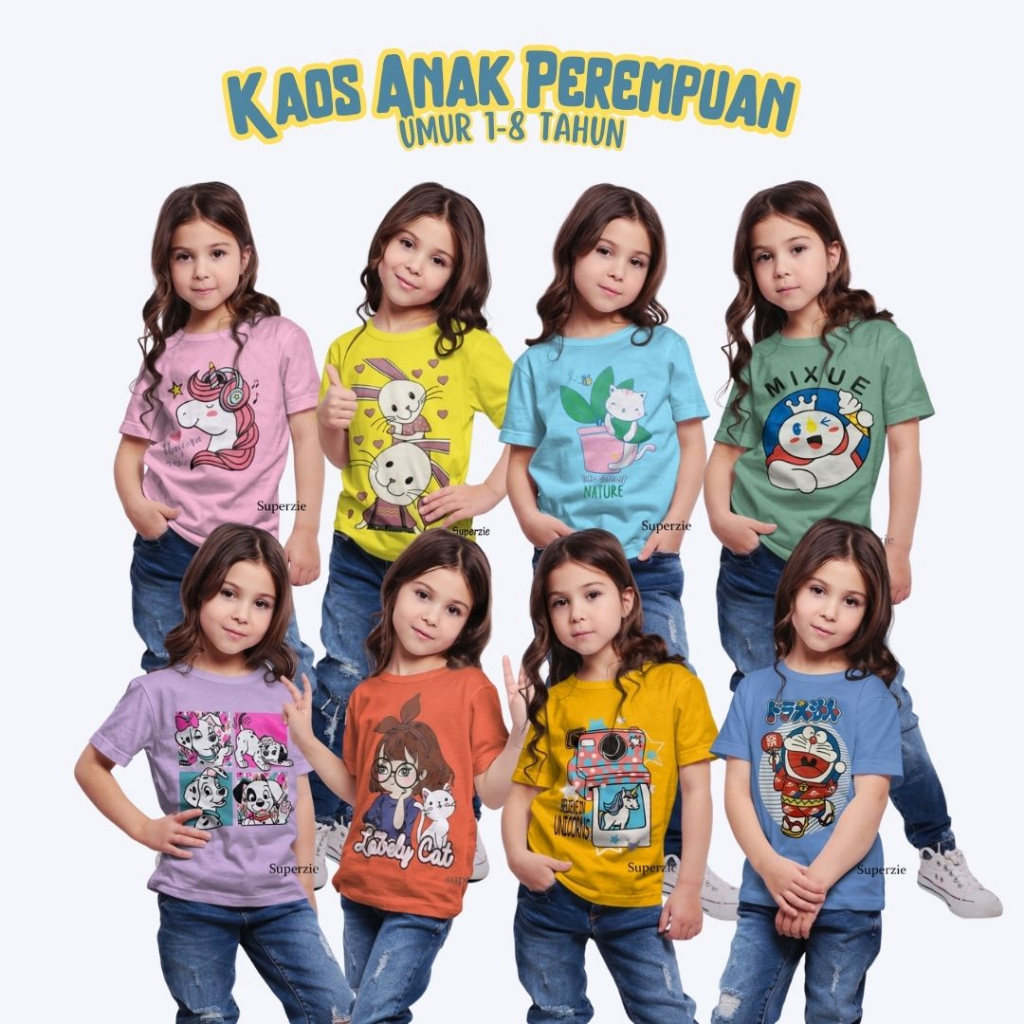Detail Baju Anak perempuan Lengan Pendek Unisex KARTUN ANIMASI LUCU MINI DISTRO SUPERZIE Superhero Bandung airlane thirteen point