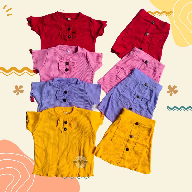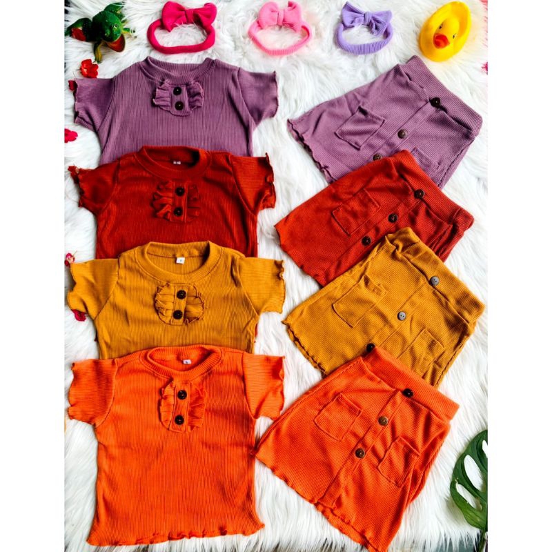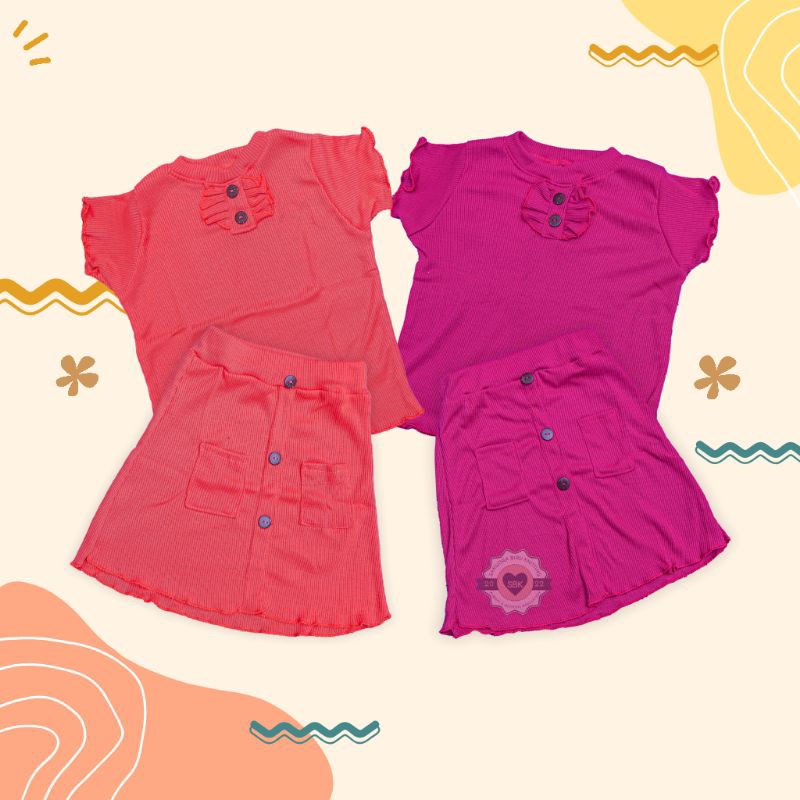 Baju Setelan Rok Ruffle Ukuran S,M,L,XL Untuk Anak Umur 1 Tahun - 5 Tahun. Bahan Rib Knit