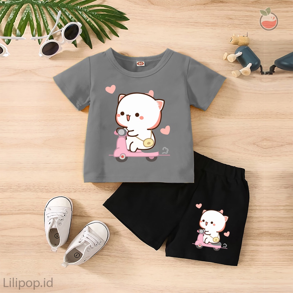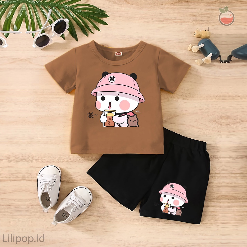 Detail Baju Anak Stelan Kaos 3/4 BEAR ICE BOBA Cowok Cewek Usia 1 - 4 Tahun Celana Pendek Harian