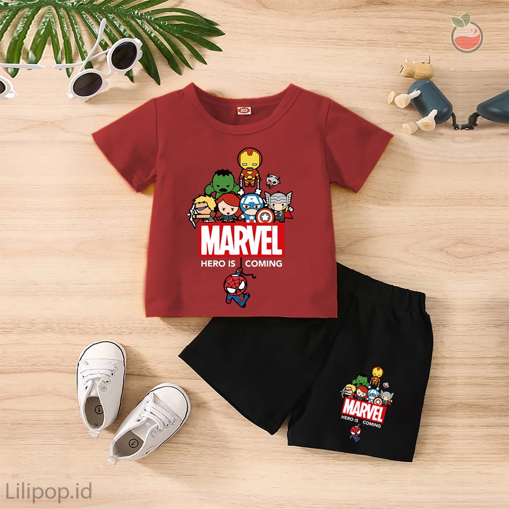 Detail Baju Anak Stelan Kaos 3/4 SUPERHERO Cowok Cewek Usia 1 - 4 Tahun Celana Pendek Harian