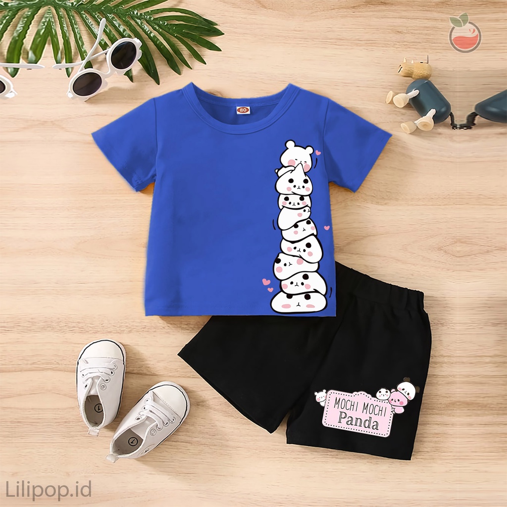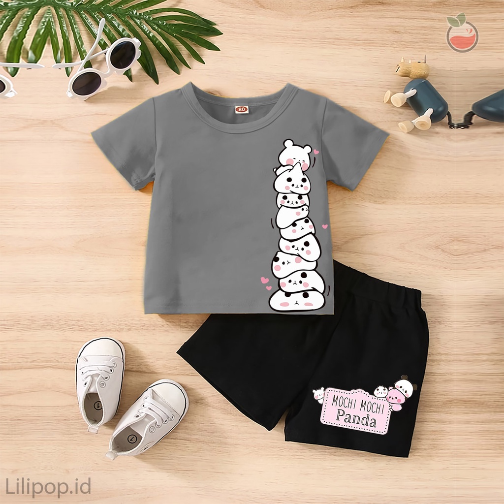 Detail Baju Anak Stelan Kaos 3/4 MOCHI PANDA Cowok Cewek Usia 1 - 4 Tahun Celana Pendek Harian