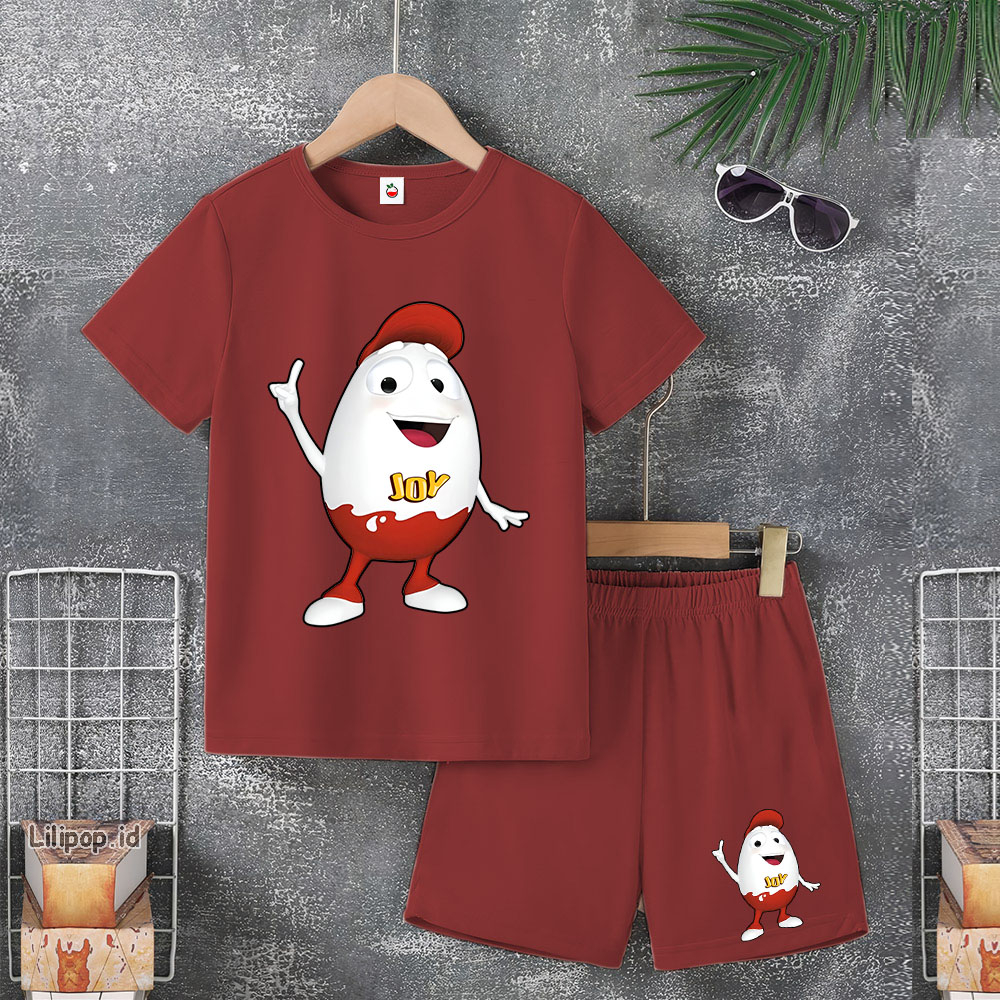 Detail Baju Anak Stelan Usia 4-10 Tahun KINDER JOY Kaos 3/4 Cowok Cewek Celana Pendek Harian