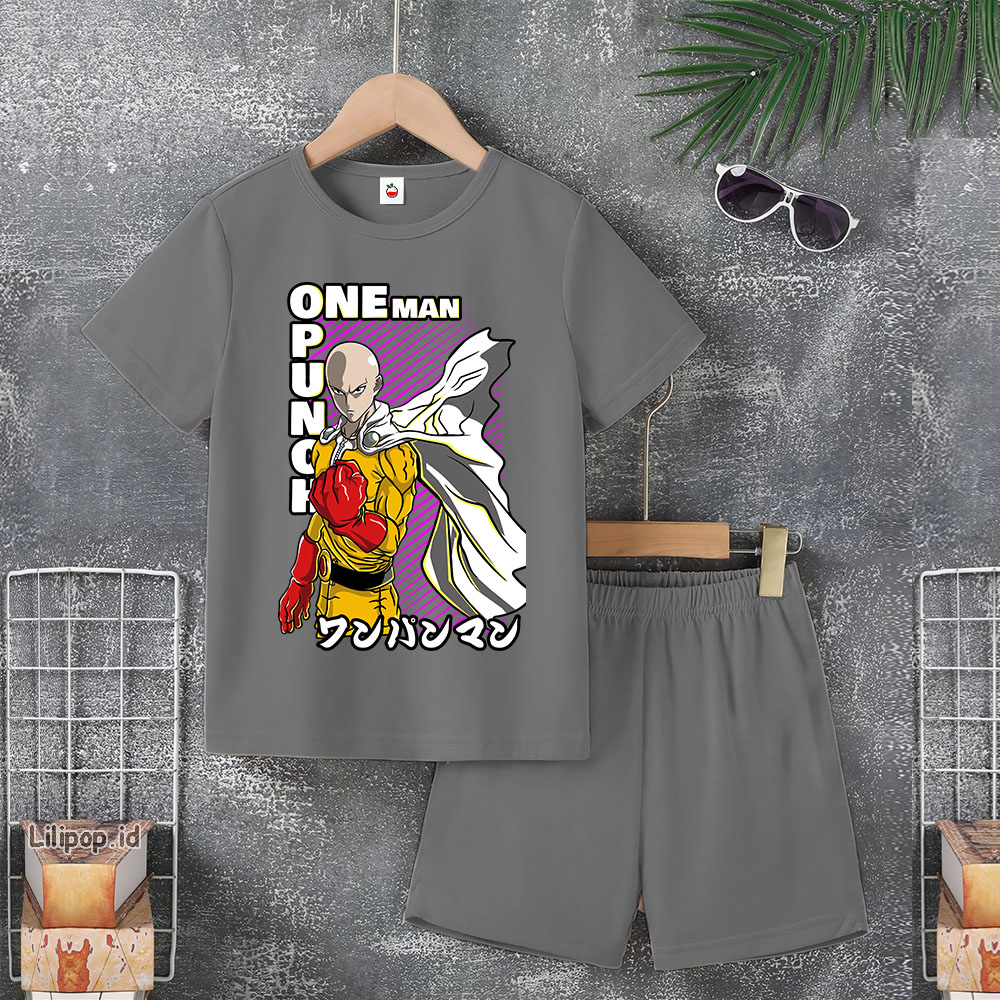 Detail Baju Anak Stelan Usia 4-10 Tahun Kaos SAITAMA 3/4 Cowok Cewek Celana Pendek Harian