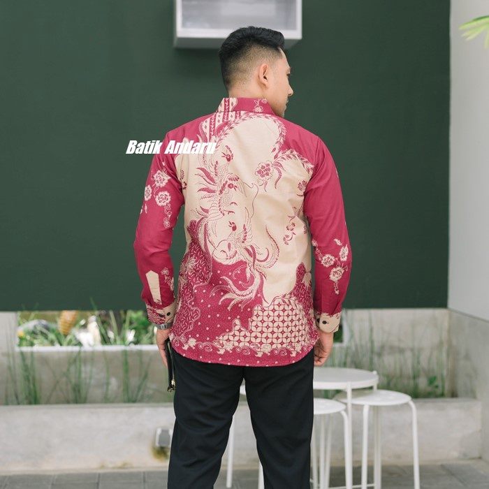 Pakaian Pria > Batik > Atasan Batik > Baju Atasan Batik Pria Slim Fit Lengan Panjang Modern Heem Premium Motif Cendrawasih Warna Hitam Merah Sogan Coklat