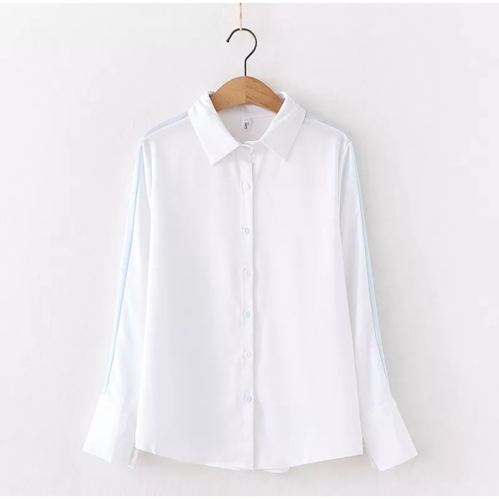 Detail Baju Atasan Kemeja wanita oversize Olivia Shirt Kemeja Putih Polos Jumbo Lengan Panjang Uk XL Kemeja Kerja Blouse