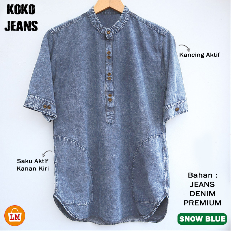 Detail Baju Atasan Pria Koko Muslim Bahan Jeans Denim Terbaru 2021 KOKO JEANS LMS 22083 22085 22087 22089