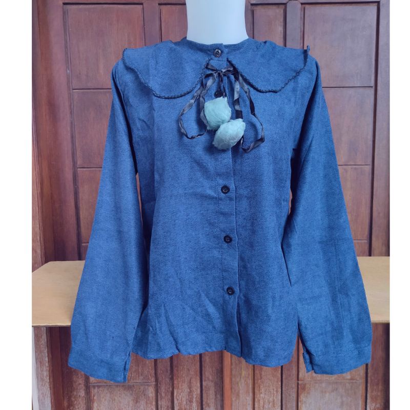 Baju Atasan Wanita Blouse Lengan Panjang Kekinian Fashion Muslim Kerah Korean Style Terbaru Baby Kodorai