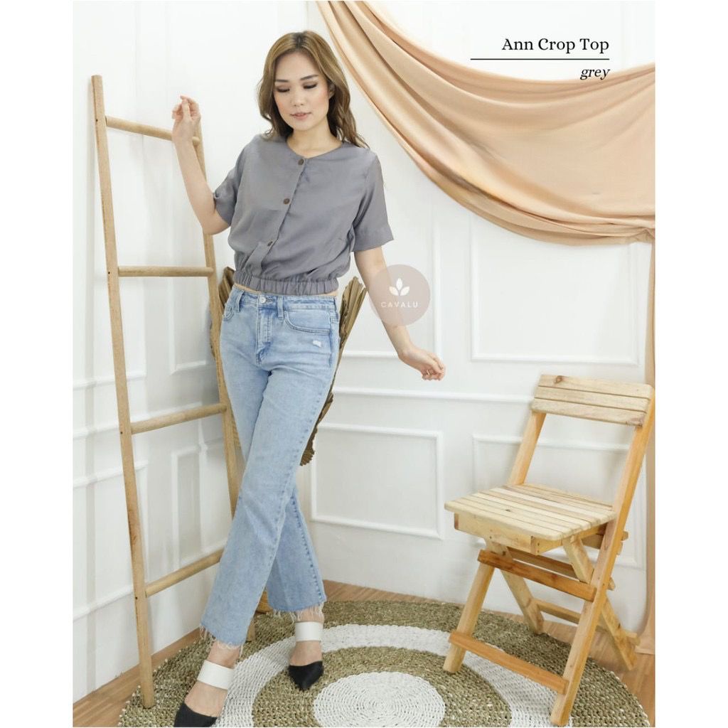 Detail Baju Atasan Wanita Crop Top Kemeja Kancing Cewek Moscrepe Halus CAVALU 038 Ann