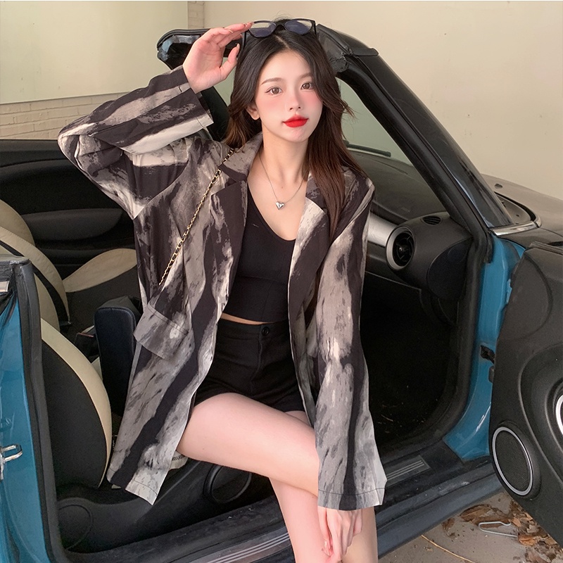 Detail Baju Atasan Wanita Lengan Panjang Retro Oversize Import Tinta Percikan Oversize Kemeja Kekinian