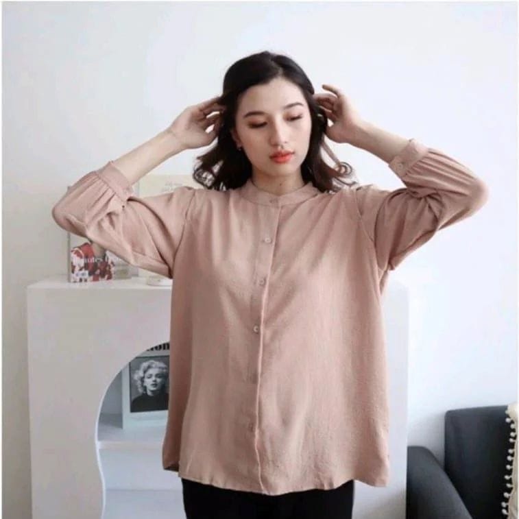 Detail Baju Atasan Wanita Terbaru Kemeja Polos Wanita Moana Blouse Lengan Balon Bahan Crinkle AirFlow
