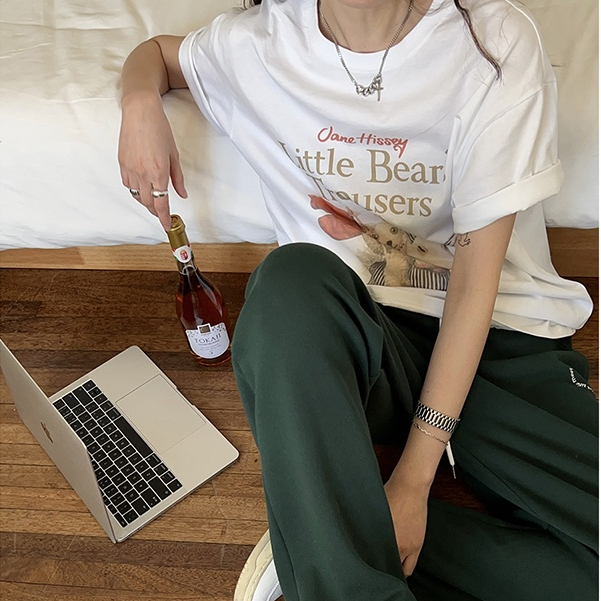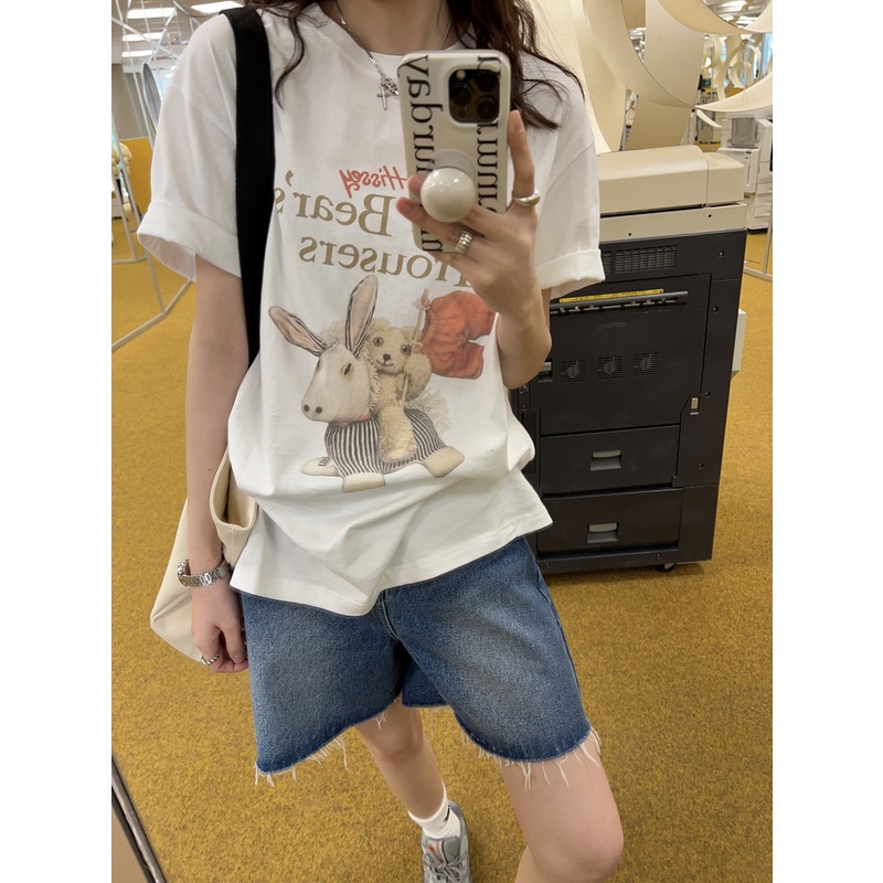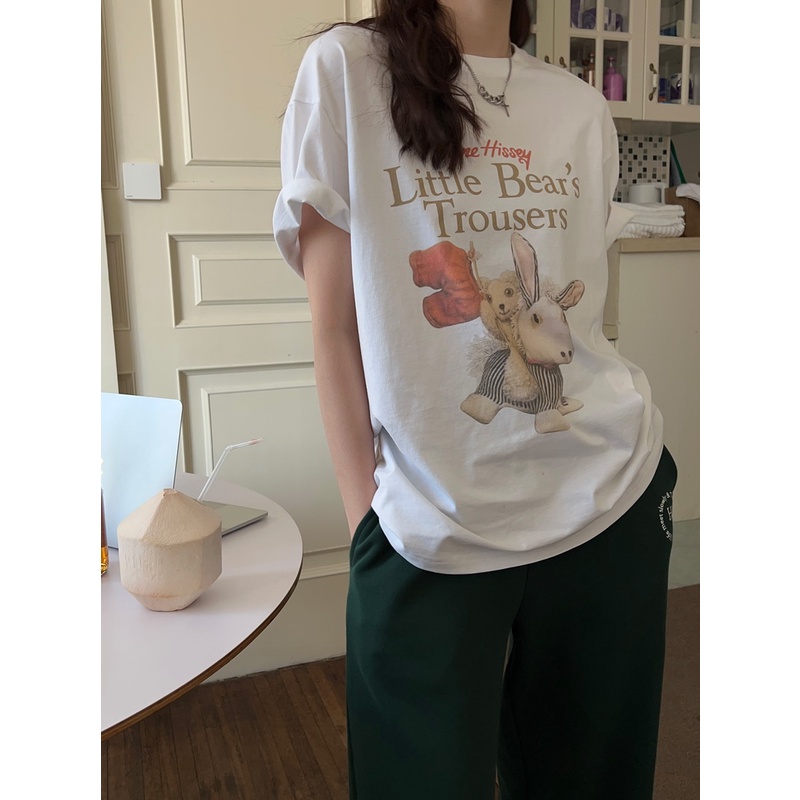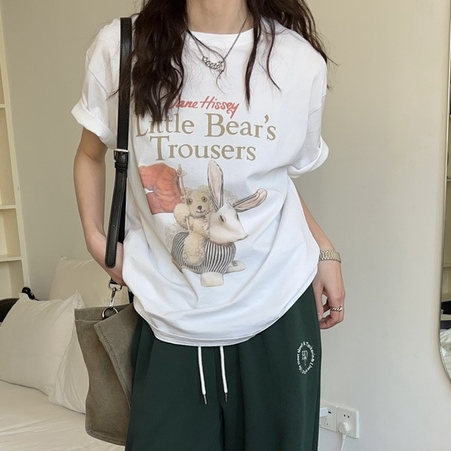 Detail baju atasan wanita terbaru lengan pendek korean style cartoon graffiti oversize kekinian kaos basic