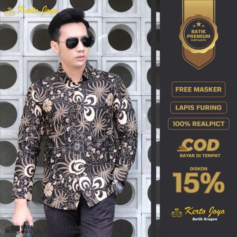 Pakaian Pria > Pakaian Tradisional > Atasan > Baju Batik Cowok Laki Laki Terbaru Premium Lengan panjang hitam kombinasi brand resmi kertojoyo baju batik pria exklusif