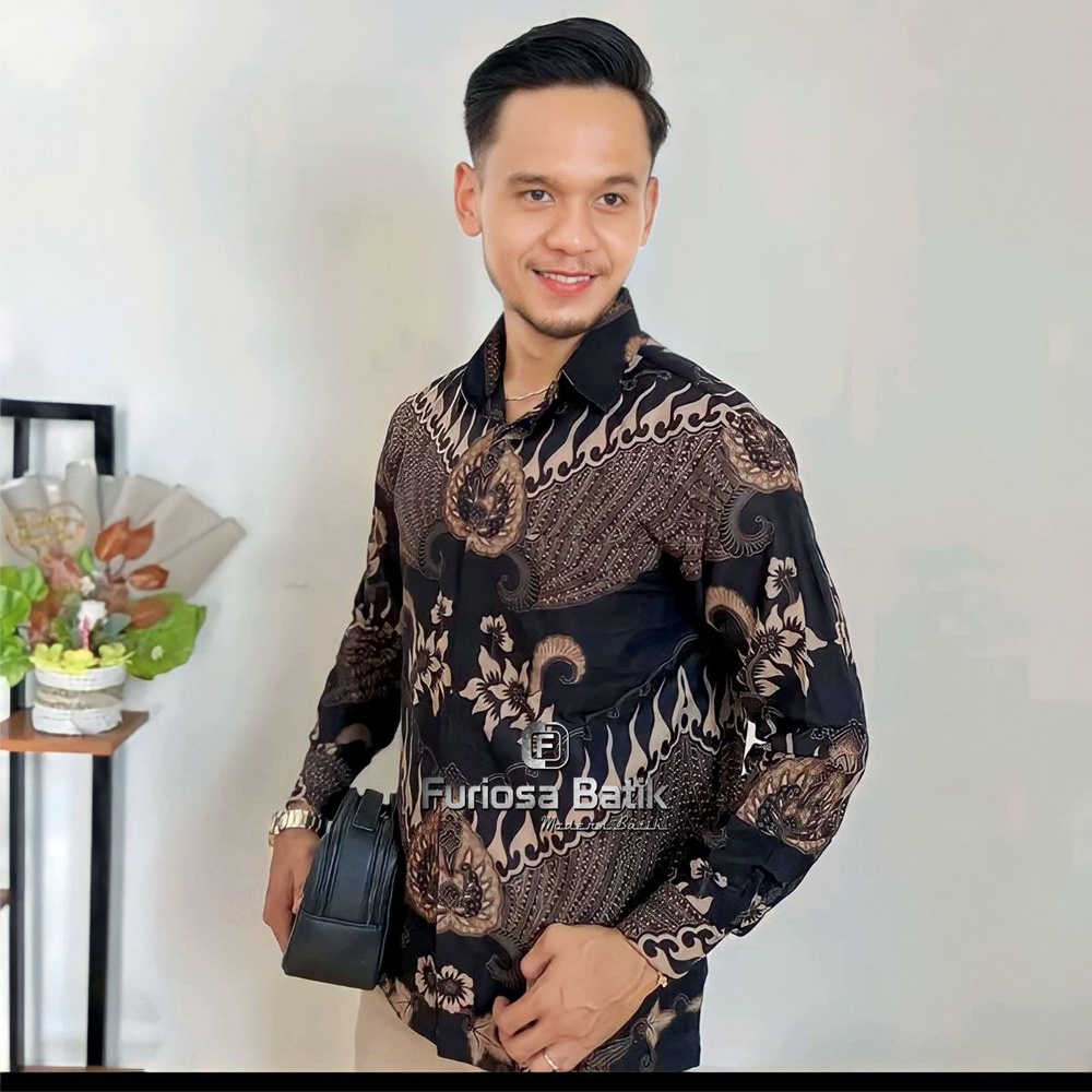 Detail FURIOSA BATIK GARUDA HITAM Kemeja Batik Pria Lengan Panjang Ukuran M L XL XXL
