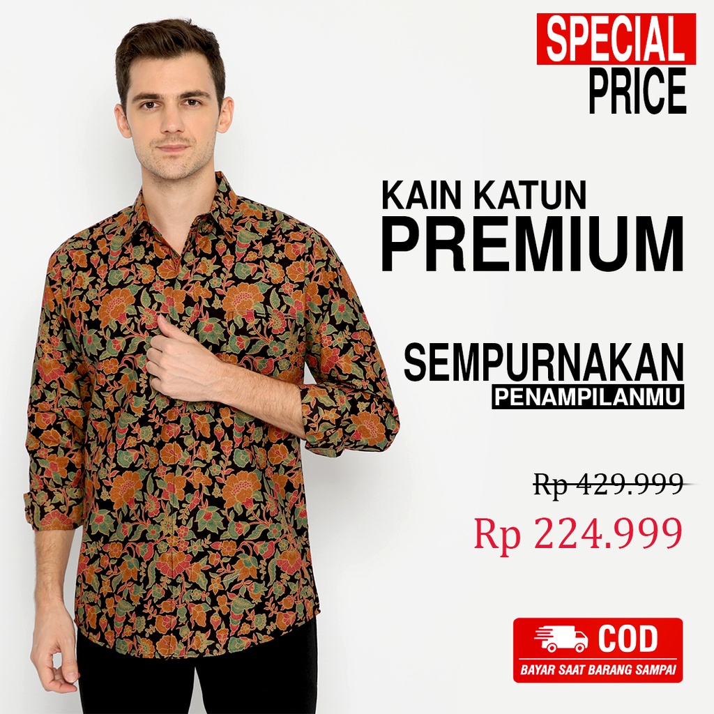 Pakaian Pria > Pakaian Tradisional > Atasan > BAJU BATIK PRIA Kemeja Lengan Panjang Slimfit Premium Elegant Warna Hitam Orange Hijau 727393 Cap 72 - Baju Kemeja Atasan Pakaian Setelan Batik Pria Cowok Laki Laki Remaja Keluarga Kantor Lengan Panjang Modern Slimfit Slim Fit Premium Kekinian