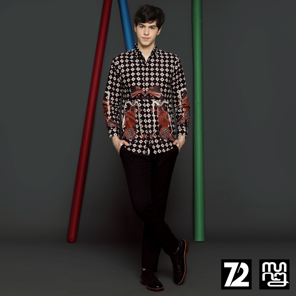Detail BAJU BATIK PRIA Kemeja Lengan Panjang Slimfit Slim Fit Premium Motif Wayang Hitam Putih Orange 723707 Cap 72 - Baju Kemeja Atasan Pakaian Setelan Batik Pria Cowok Laki Laki Remaja Keluarga Kantor Lengan Panjang Modern Slimfit Slim Fit Premium Kekinian