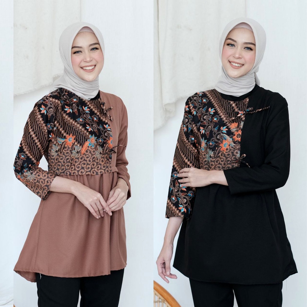 Baju Batik Wanita Modern Atasan Batik Kerja Wanita Blouse Batik Kantor Wanita Lengan Panjang Seragam M L XL XXL