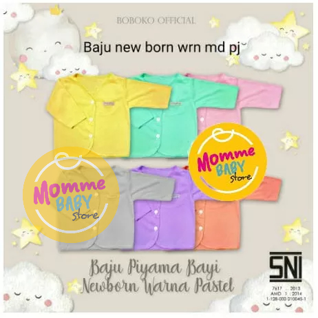 Detail Baju Bayi BOBOKO NEWBORN 0-6 Bulan Katun Adem Baju Kancing Panjang Pendek Kutung Celana Pop Popok Tali Baju Oblong Pendek Warna Pastel
