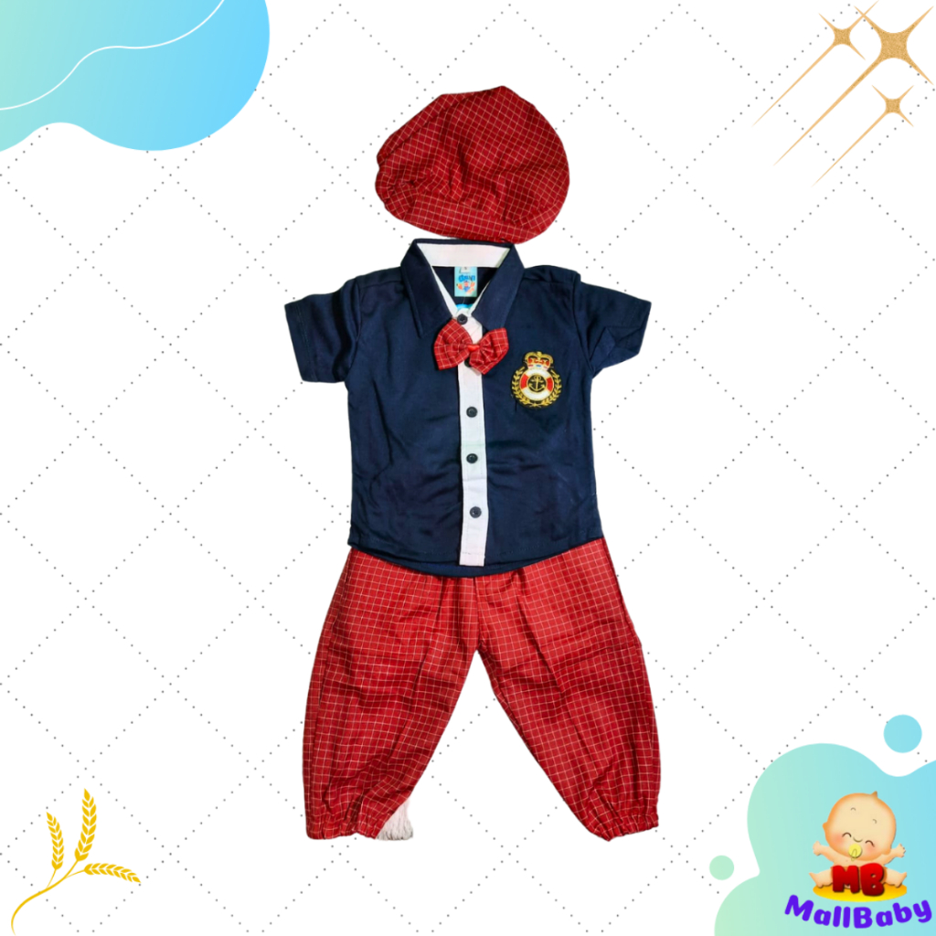 Setelan Baju Pesta Bayi laki Laki Set Dasi Topi Celana Joger Bahan Katun, adem dan nyaman untuk kulit Bayi :)
